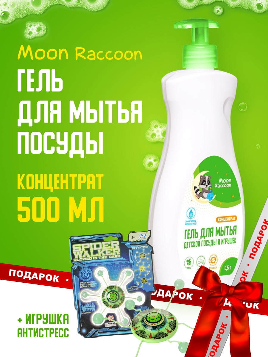 Moon Raccoon Premium Care. Гель для мытья детской посуды + Подарок Игрушка-антистресс. Лизун
