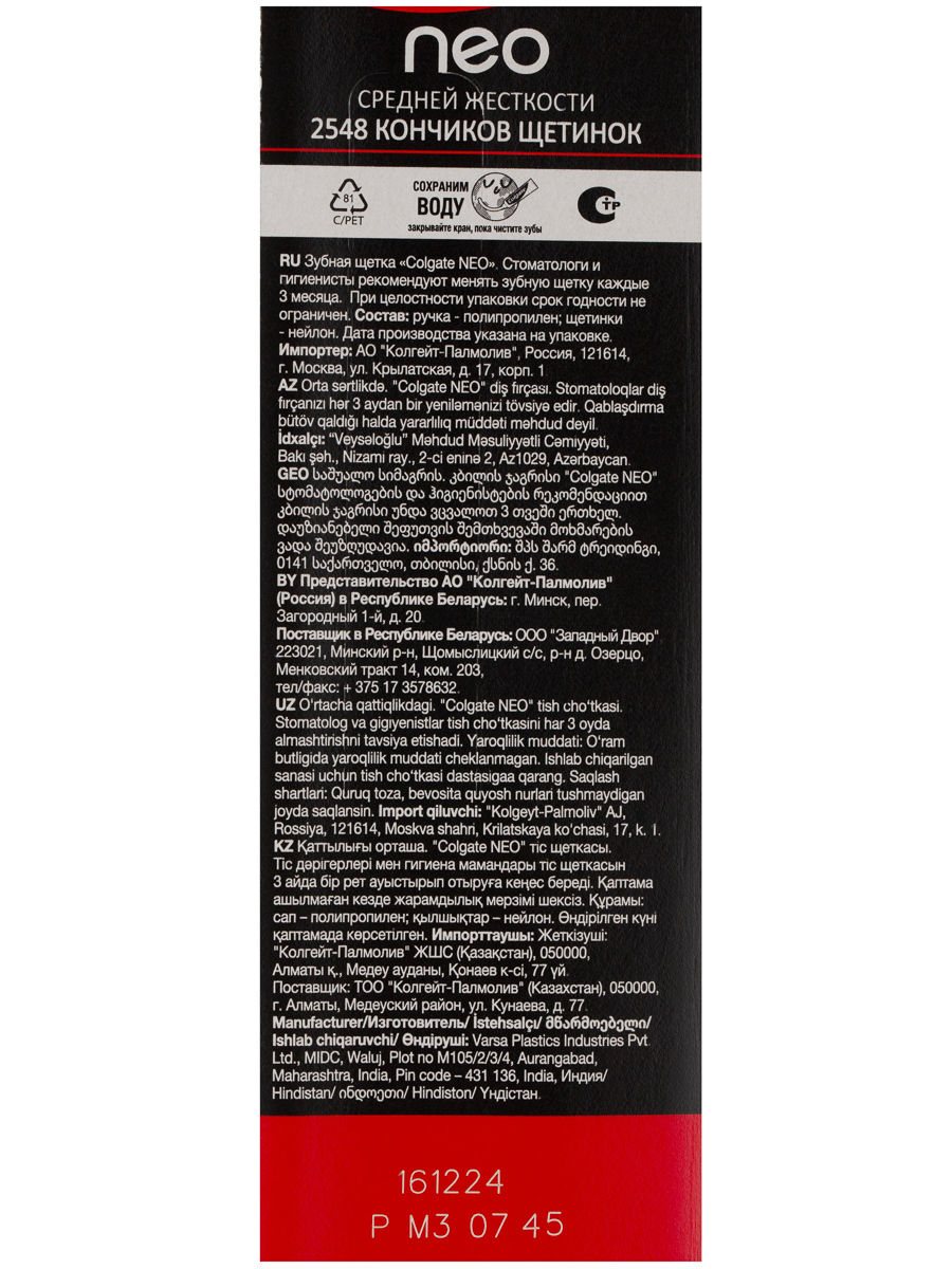 Зубная щетка Colgate Neo 2548 — стильная и обладающая непревзойденными функциональными преимуществами щетка с щетиной средней жесткости превращает чистку зубов в легкий процесс. Она бережно относится к зубам и деснам и эффективно очищает полость рта, обеспечивая приятное ощущение чистоты.А яркая цветовая гамма из 6 вариантов поможет найти именно "свою" щетку, что сделает процесс чистки не только полезным, но и приятным во всех смыслах!