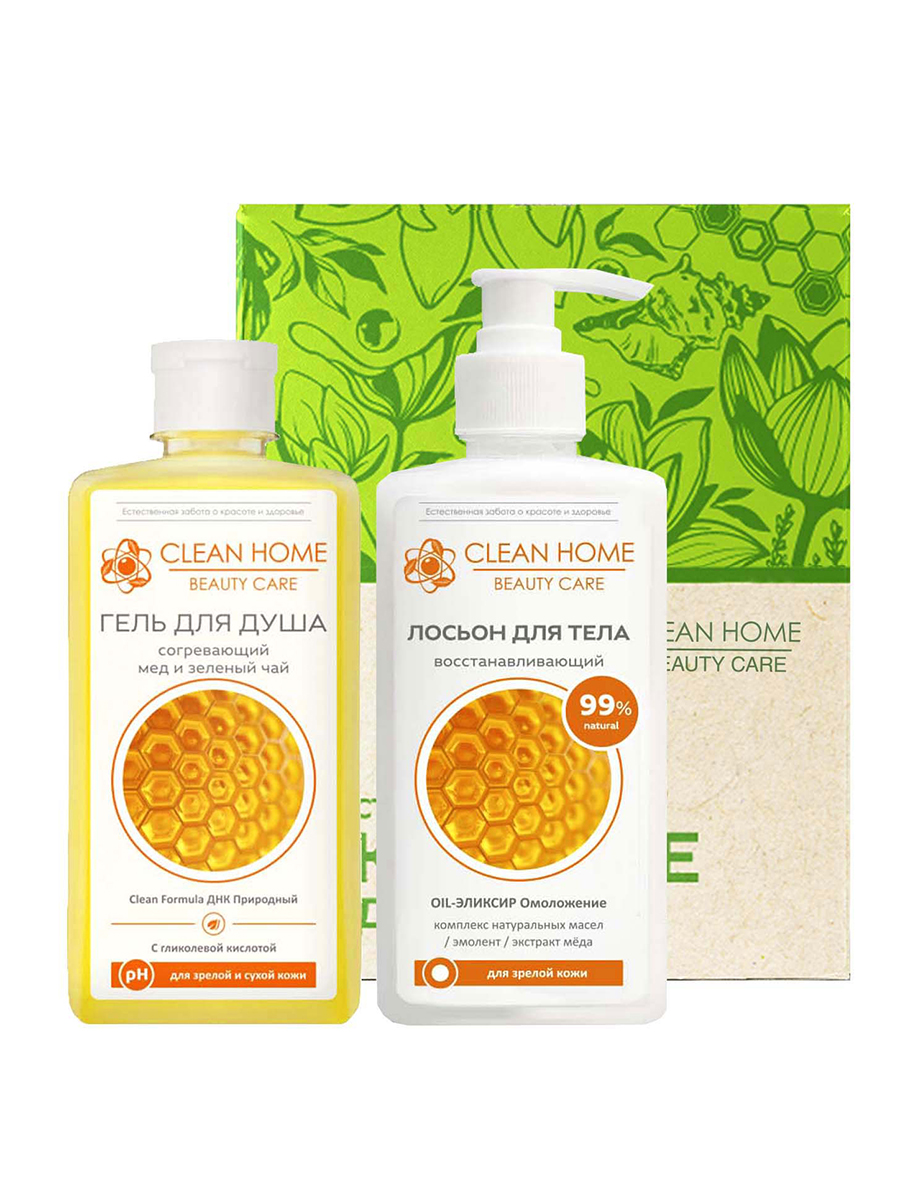 CLEAN HOME BEAUTY CARE набор уходовых средств в подарочной коробке Восстанавливающий (гель для душа 350мл, лосьон 350мл)