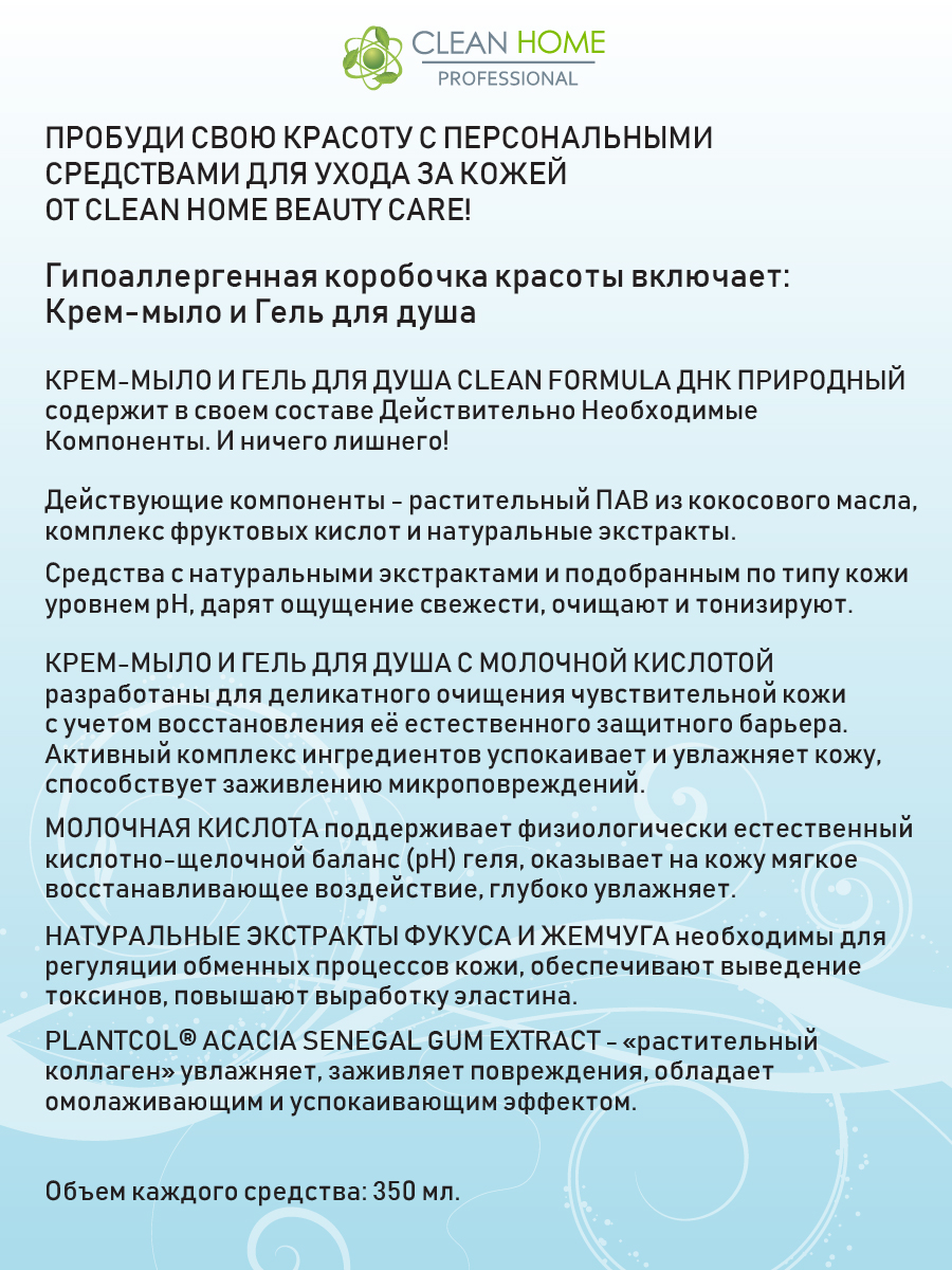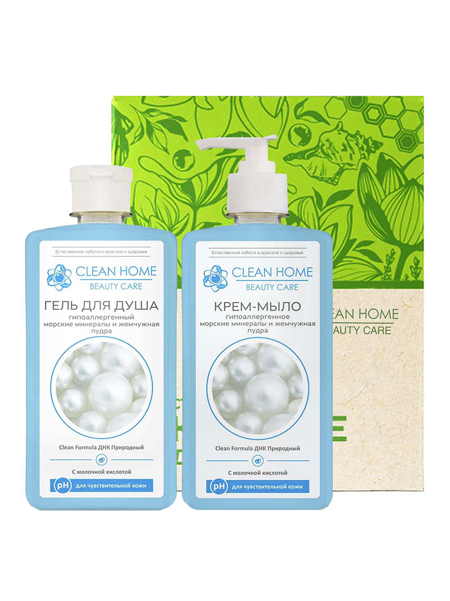 CLEAN HOME BEAUTY CARE набор уходовых средств в подарочной коробке Гипоаллергенный (гель для душа 350мл, крем-мыло 350мл)