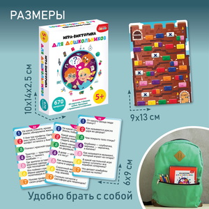 Благодаря компактному размеру коробки, викторину удобно хранить и легко можно взять с собой в дорогу.