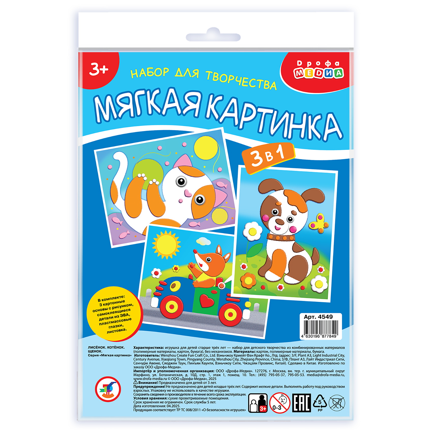 Дрофа-Медиа Набор для творчества Мягкая картинка (3 в 1). Лисёнок. Котёнок. Щенок