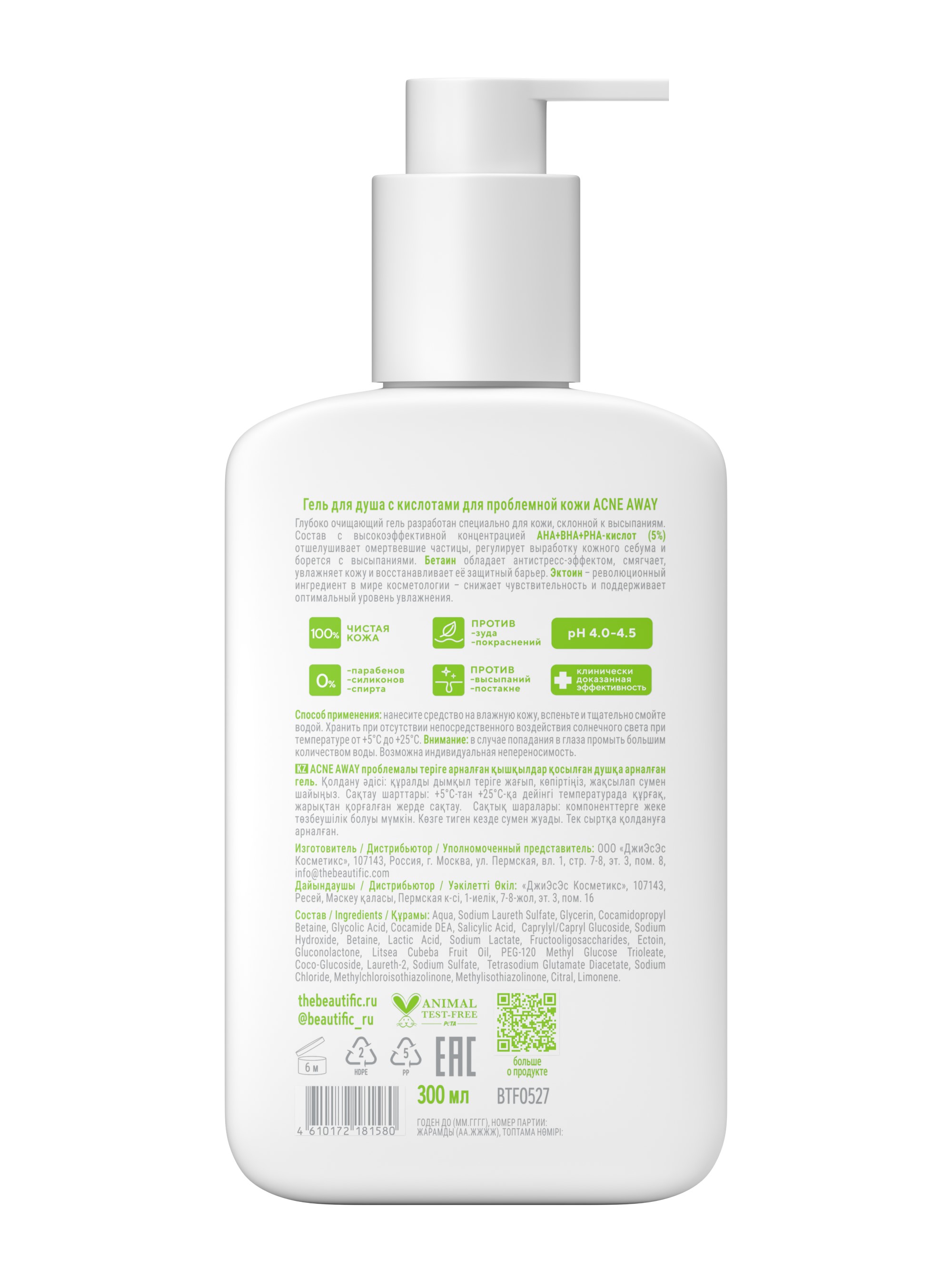 BEAUTIFIC Acne Away Гель для душа с кислотами для проблемной кожи 300мл