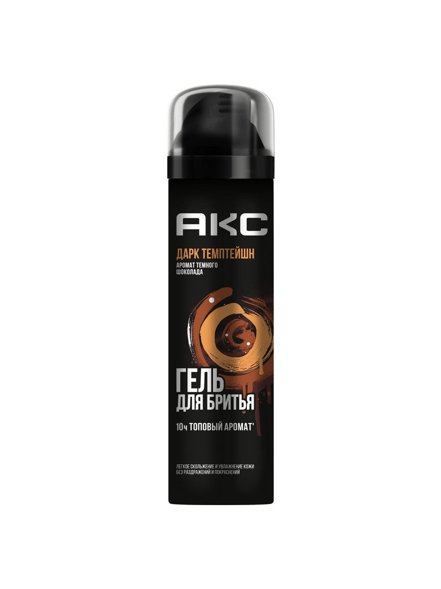 Используй полосатый сливочно-карамельный гель для бритья АКС Дарк Темптейшн и ощути на своей коже стойкий до 10 часов' топовый* аромат темного шоколада для твоего настроения и уверенности в себе на весь день! Формат флакона на 200 мл, удобное дозирование легким нажатием и нанесение без потерь обеспечивают экономичный расход средства для личной гигиены, которого хватит до 80 использований**.
