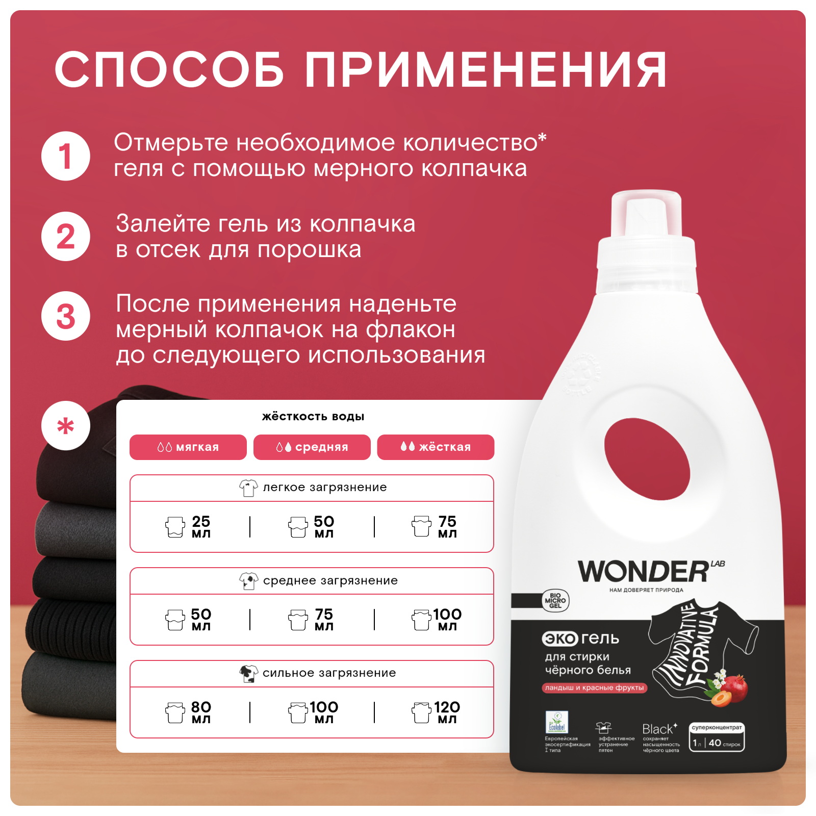 WONDER LAB Экогель для стирки черного белья (ландыш и красные фрукты) 1000 мл