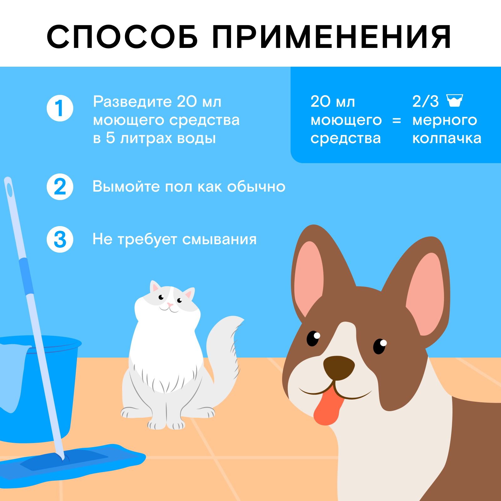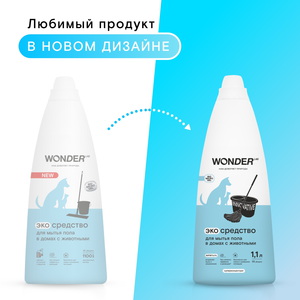 Моющее средство для полов WONDER LAB отлично подойдет для домов с питомцами. Средство удаляет любую грязь от домашнего любимца, шерсть, запах, препятствует повторному загрязнению. Идеально подойдет для мытья пола вокруг миски, лотков, лежанок. Благодаря нейтральному аромату, средство не раздражает даже самых чувствительных, при этом, устраняет посторонние запахи. Экономично расходуется, благодаря концентрированной формуле. На 5 литров вам понадобится всего 1/3 колпачка. Чистящее средство для пола подходит для любых типов напольных покрытий: ламинат, линолеум, керамическая плитка, мрамор, паркет. Средство не требует смывания, не оставляет пленки и разводов. Отлично снимает статическое электричество и не создает «липкого» эффекта. В составе нет токсичных компонентов, которые могли бы навредить вам или вашему питомцу при попадании внутрь или в дыхательные пути.Чистящие средства WONDER LAB не содержат токсичных компонентов, опасных для природы или человека. И всё это благодаря инновационному компоненту Biomicrogel, который сделан из овощей и фруктов.