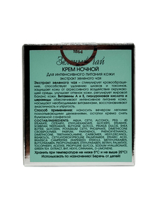 Витамины А, Е, гиалуроновая кислота и церамиды обеспечивают быстрый увлажняющий эффект, насыщают кожу необходимыми витаминами, способствуют выработке коллагена. Крем предназначен для ухода за кожей в ночное время: тонизирует, интенсивно питает, увлажняет, восстанавливает эластичность и упругость кожи, регулируя ее жировой баланс.