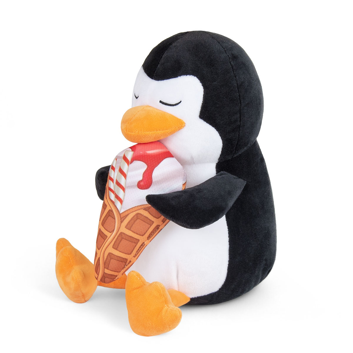 Пингвин — настоящий гурман! Он обожает посещать кафе Maxitoys, где каждый вечер покупает самую вкусную гонконгскую вафлю. В его лапках всегда можно увидеть этот сладкий десерт, который он с удовольствием уплетает, прогуливаясь по вечернему городу.