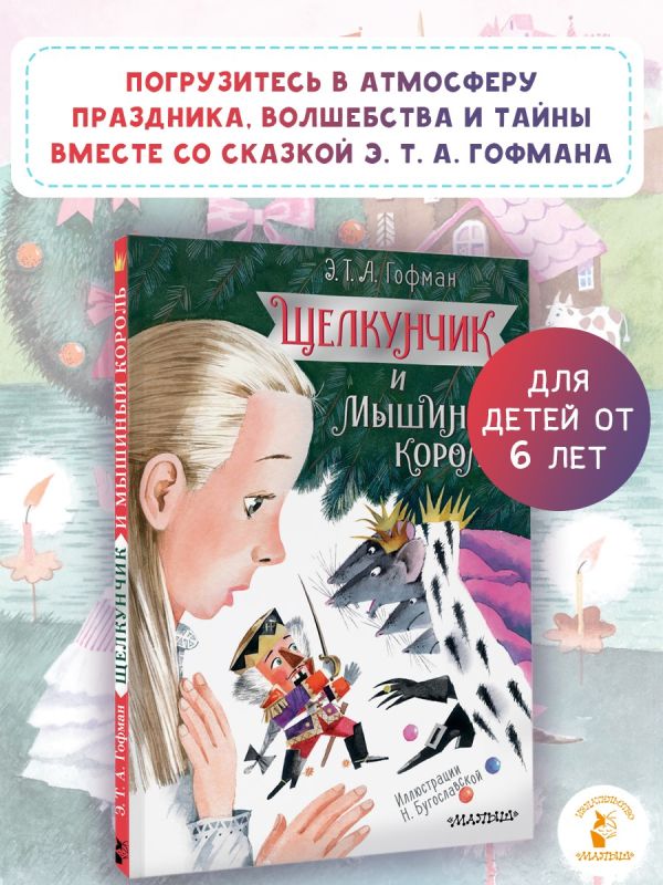 «Щелкунчик и Мышиный король» — это атмосфера праздника, волшебства и тайны. Классическая история Э.Т.А. Гофмана про отважную Мари, непоседливого Фрица, смелого Щелкунчика и страшного Мышиного короля захватывает читателей вот уже более 200 лет! Великолепные, атмосферные, яркие иллюстрации Надежды Бугославской перенесут вас в мир чудес. Надежда Бугославская — лауреат Всероссийского конкурса «Образ книги» (2024) за иллюстрации к этому произведению. Кол-во страниц - 64 Тип обложки - Твердый переплет