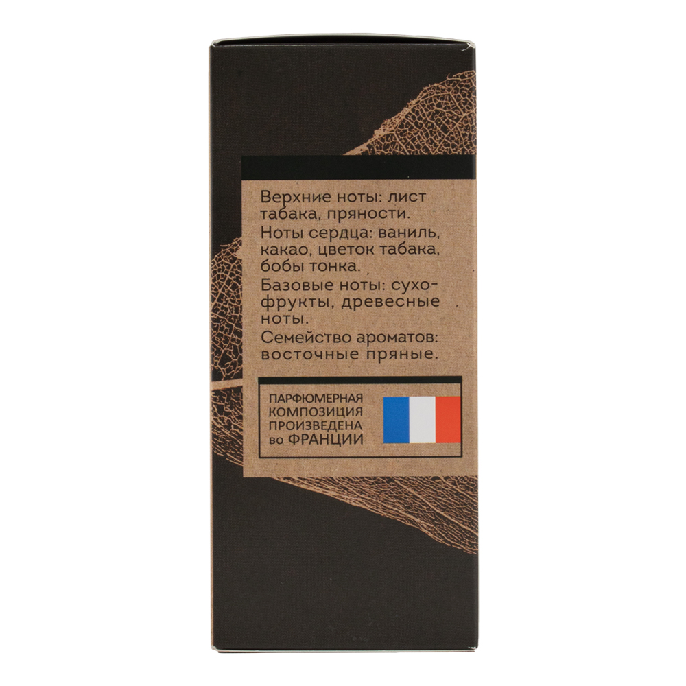 Композиция - история мужской смелости и страсти, которая подчеркнет неповторимую силу. Пряности добавляют аромату пикантность и интригу, в глубине сердца ваниль и какао создают атмосферу роскоши и сладкой страсти. В шлейфе остаются стойкие древесные ноты.Верхние ноты: лист табака, пряности.Ноты сердца: ваниль, какао, цветок табака, бобы тонка. Базовые ноты: сухофрукты, древесные ноты.