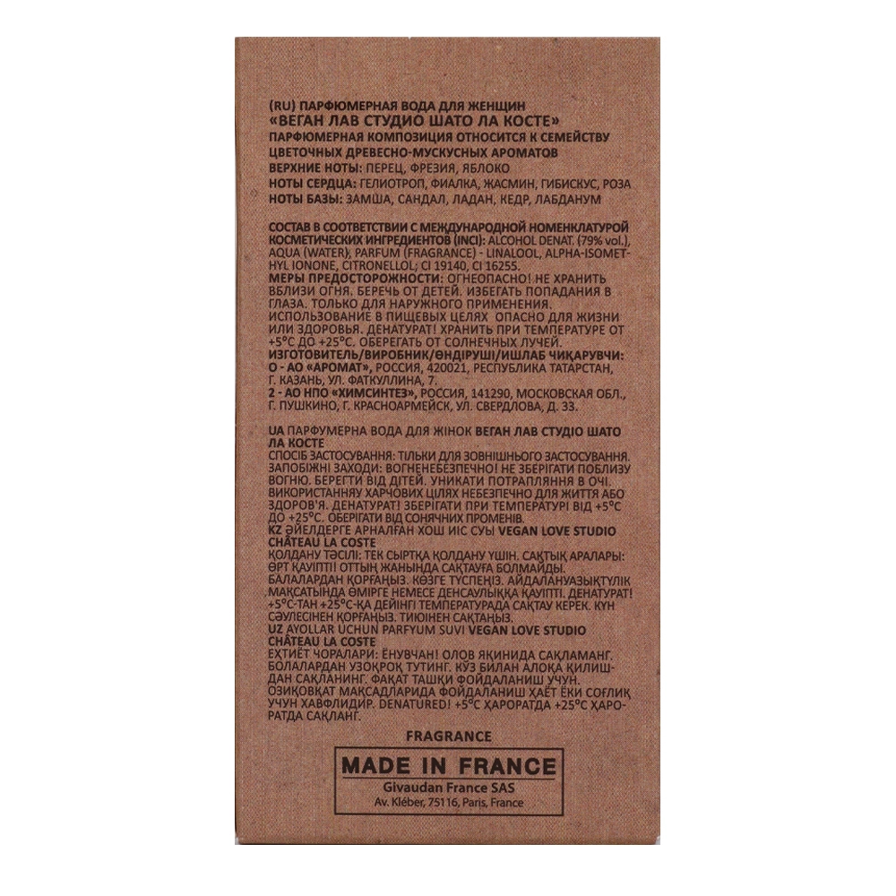 VEGAN.Love.Studio Парфюмерная вода Chateau La Coste (Веган Лав Студио Шато Ла Косте), 50мл, женская