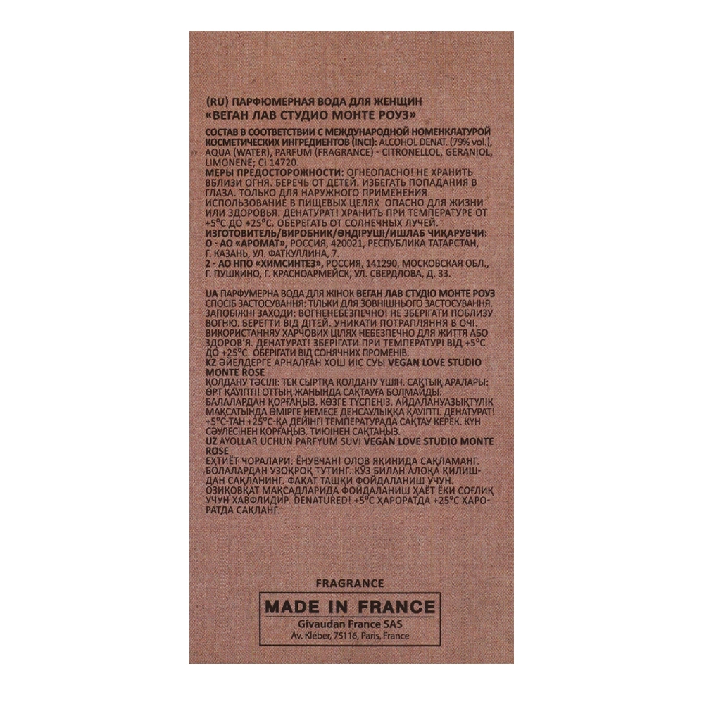 VEGAN.Love.Studio Парфюмерная вода Monte Rose (Веган Лав Студио Монте Роуз), 50мл, женская