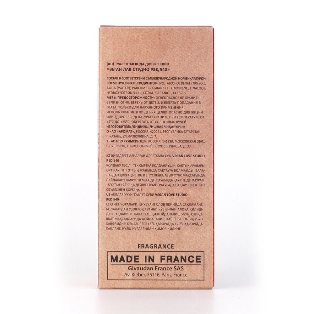 VEGAN.Love.Studio Туалетная вода Red 540 (Веган Лав Студио Рэд 540) 100мл женская
