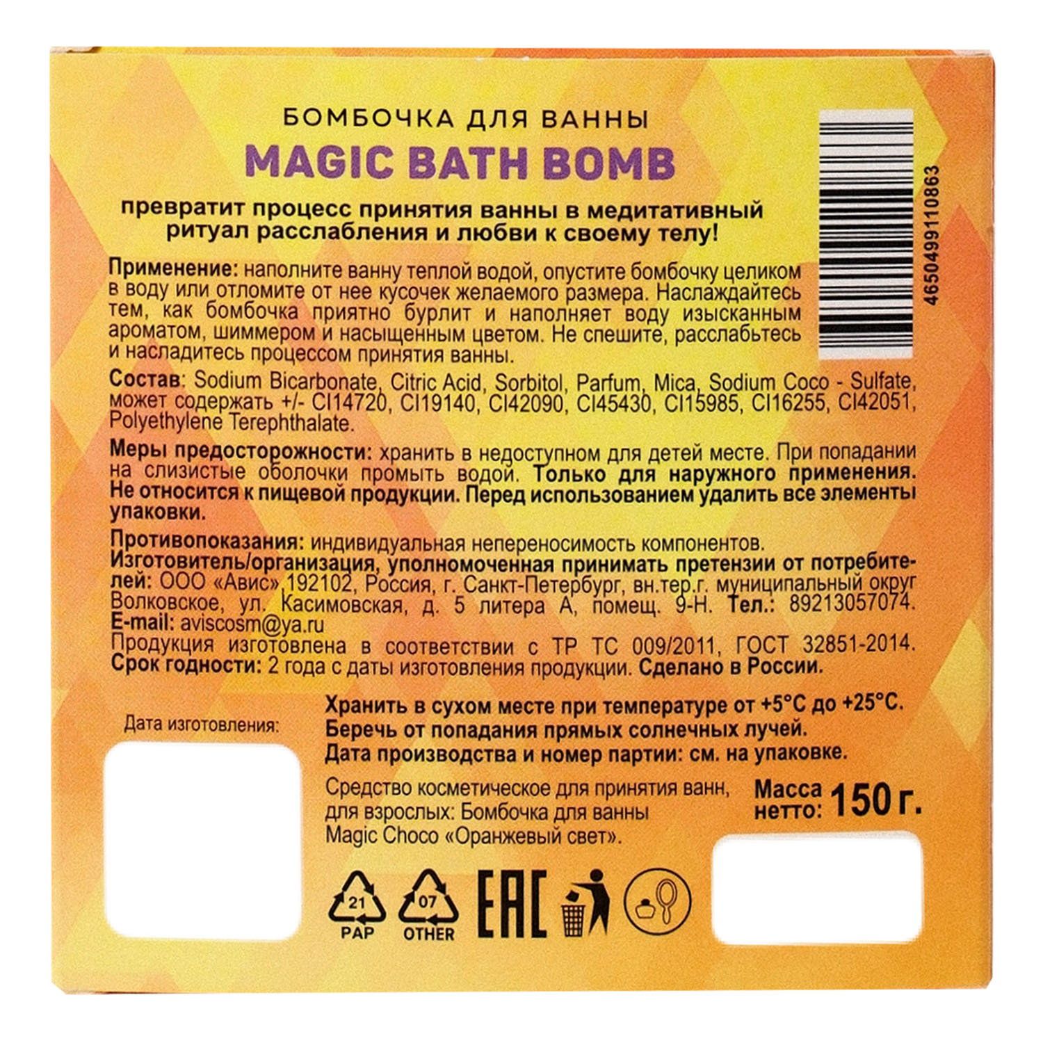 Bath Time Бомбочка для ванны Magic ChocoBomb оранжевая с блестками 150г