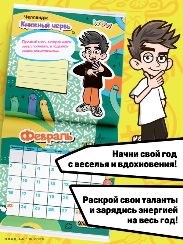 Календарь с челленджами от Влада А4 – твой путь к веселью и новым вершинам!Этот календарь наполнен яркими, захватывающими челленджами и заданиями, которые помогут тебе раскрыть свои таланты и зарядиться энергией на весь год.