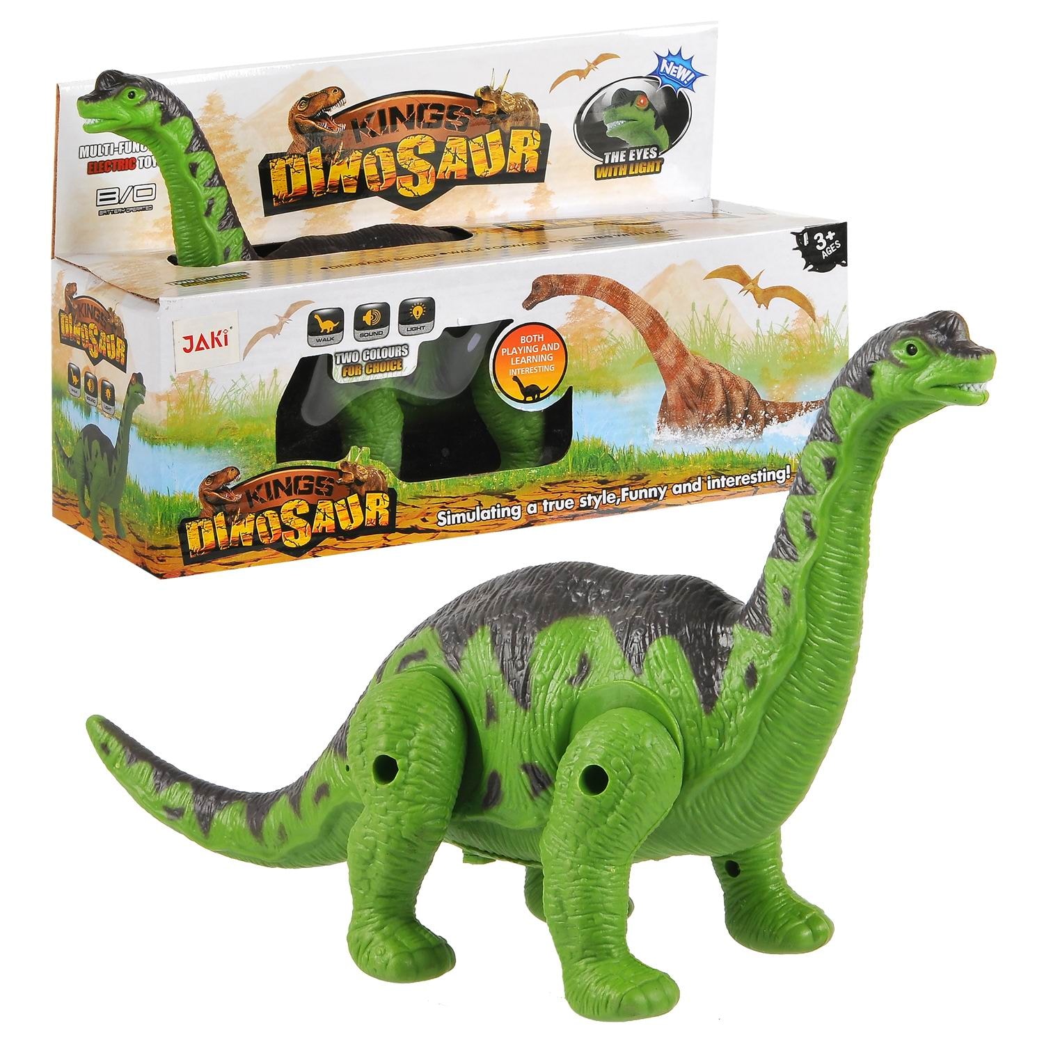 Игрушка "Динозавр Брахиозавр" обязательно понравится детям, которые любят доисторических гигантов. Брахиозавр выглядит очень реалистично, начиная от морды с длинной шеей, заканчивая хвостом. Играть с таким динозавром будет очень интересно! Ведь он умеет самостоятельно шагать на четырех лапах (движение только вперед), издавать звуки, имеет горящие глаза (мигающая подсветка). Игрушка поможет Вашему ребенку переместиться в прошлое, окунуться в мир Юрского периода!Для работы требуются 2 батарейки типа "АА" (не в комплекте).