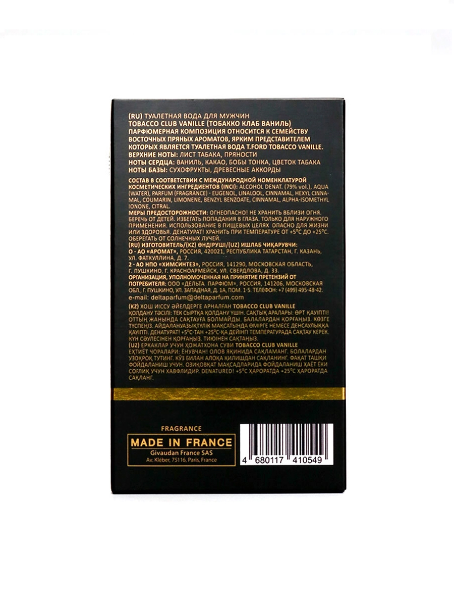 Delta parfum Туалетная вода Tobacco Club Vanille (Тобакко Клаб Ваниль), 100мл, мужская