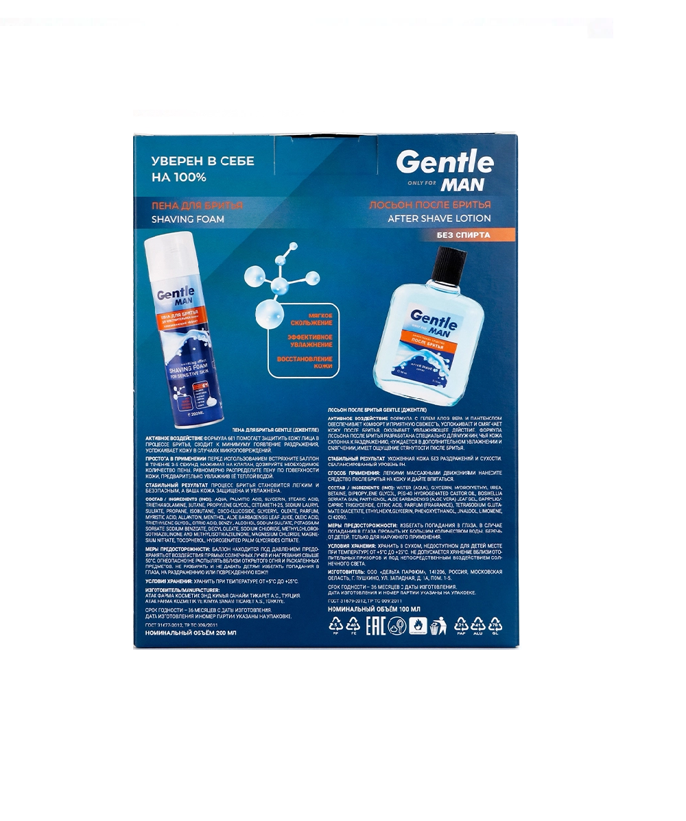 Набор косметический Gentle (пена д/бритья. 200мл + лосьон п/бритья100мл) мужской