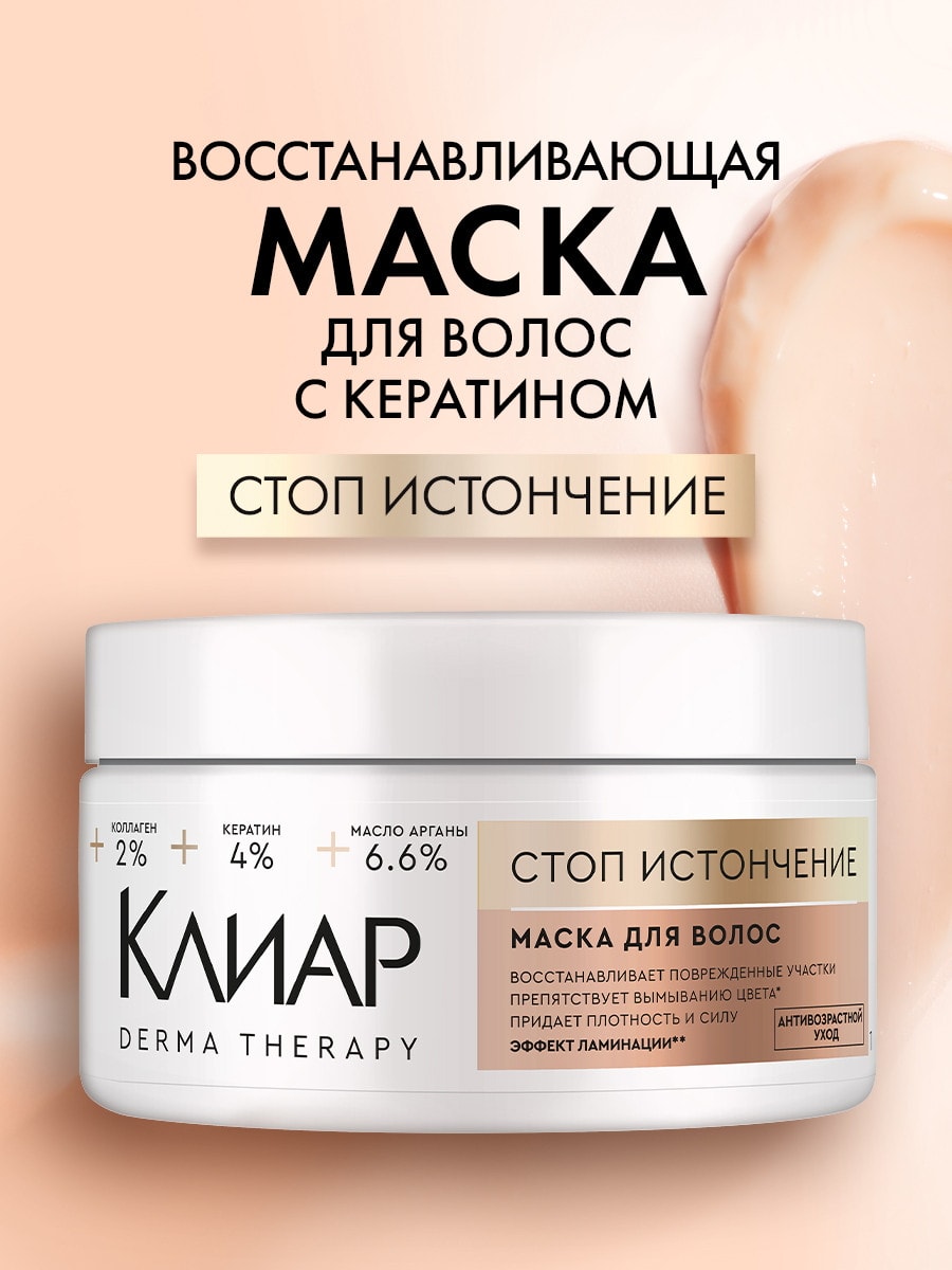 Маска для волос с кератином, коллагеном и аргановым маслом Клиар — это восстанавливающее средство, созданное для эффективного ухода за вашими локонами.Формула продукта содержит 2% коллагена', 4% кератина' и 6,6% масла арганы'. Маска Клиар Derma Therapy Стоп Истончение – это идеальное решение для восстановления поврежденных участков волос.