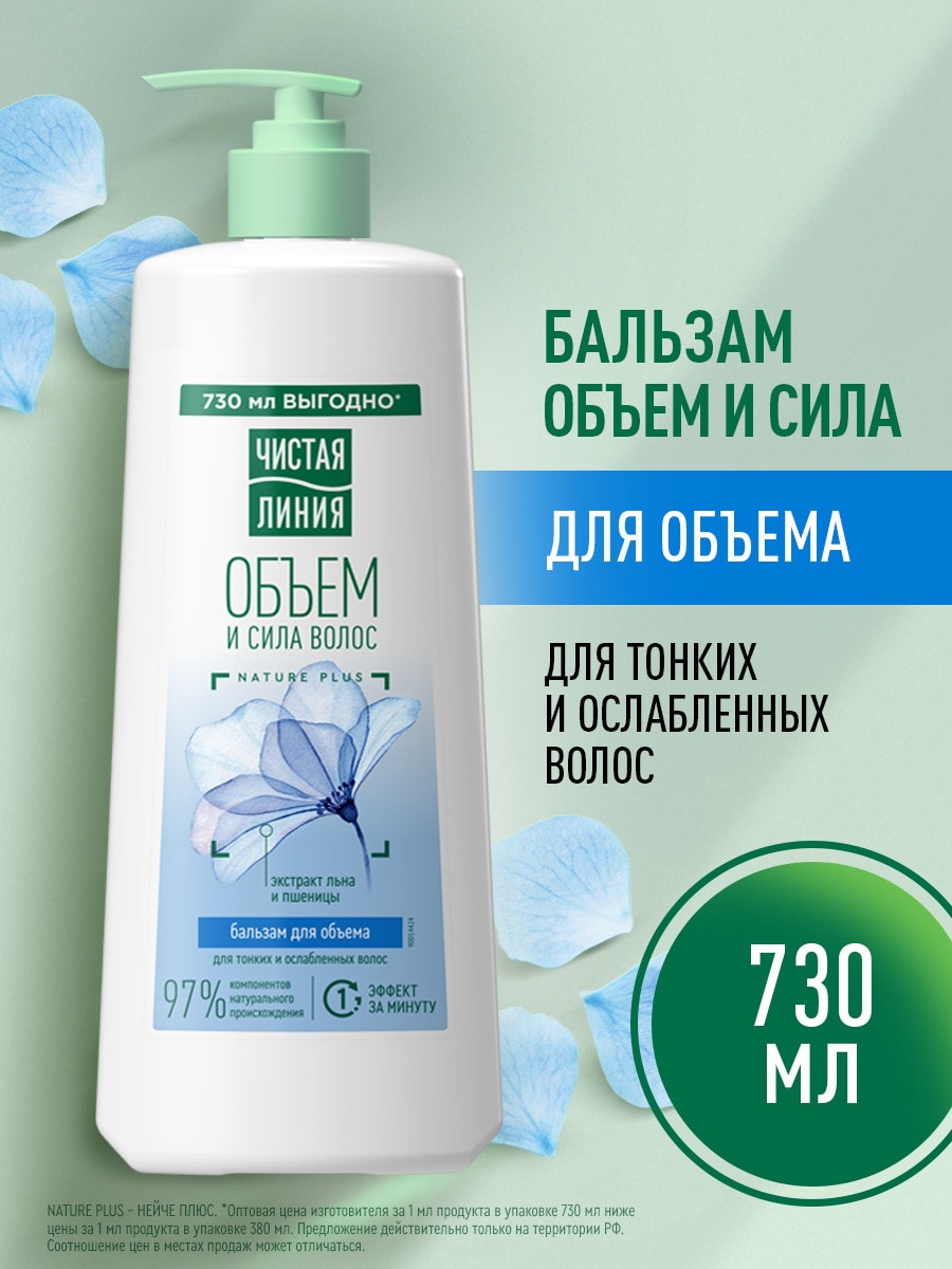 Чистая линия Объем и сила волос Бальзам- ополаскиватель для тонких и ослабленных волос 730мл