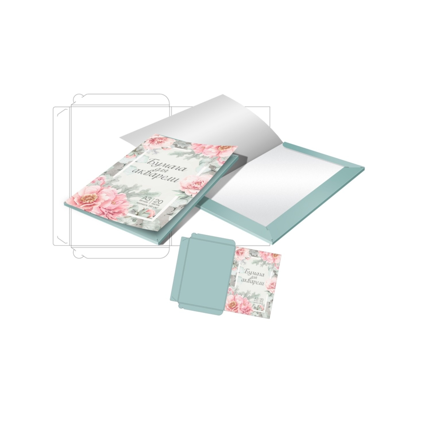 Бумага для акварели в папке «Цветы» А3, 20 листов, плотность 180/м2, 100% белизна