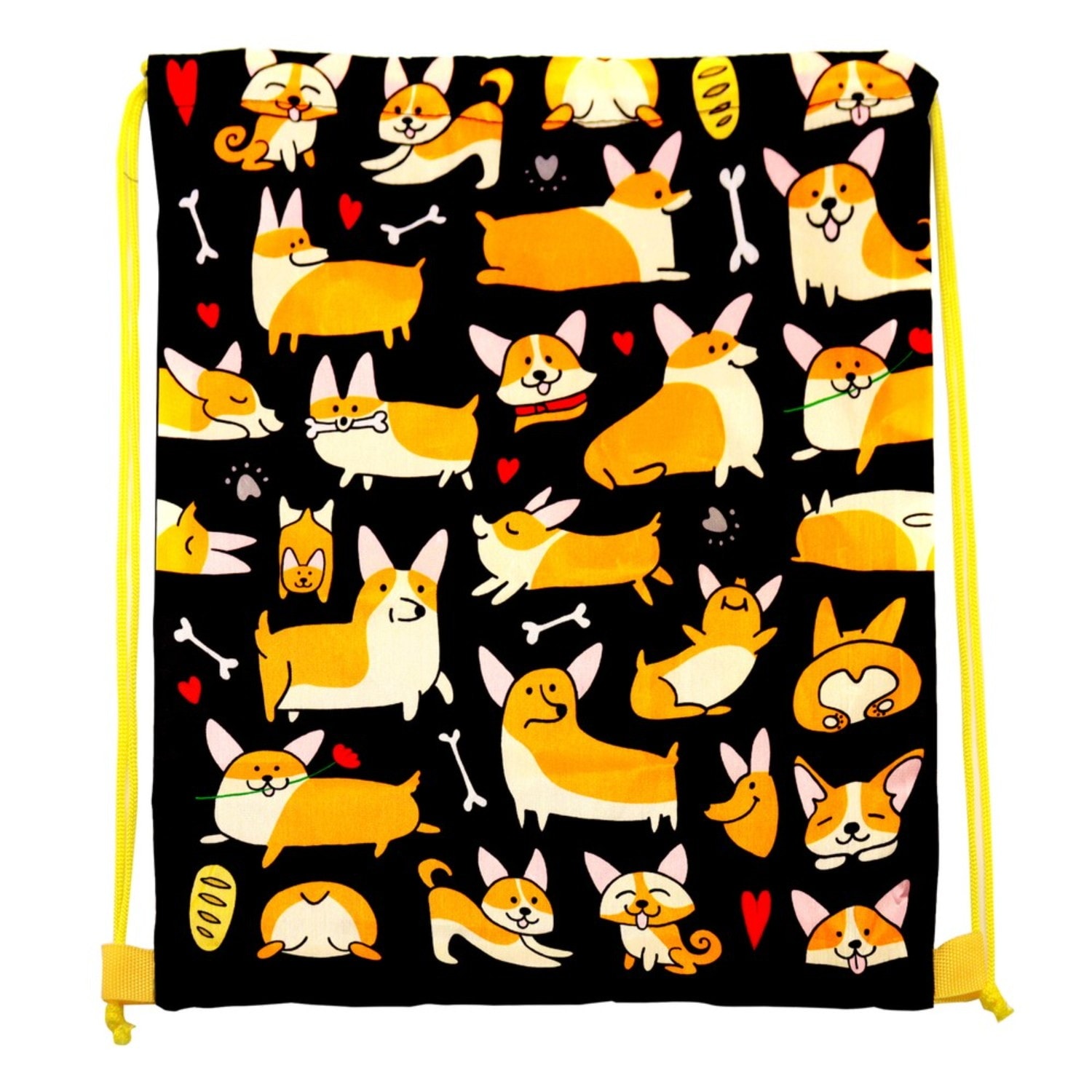 Прочная детская сумка с удобными ручками-шнурками по бокам Корги. Мешок для обуви состоит из одного вместительного отделения, нести можно как в руках, так и за спиной. Выдерживает нагрузки и идеально подходит для переноски еды в ланч-боксах, контейнерах, бутылках. Также можно носить личные вещи, учебники, игрушки, спортивные вещи для тренировок, и даже использовать как мешок для обуви. Материал 100% полиэстер. Размер 35х41 см. Максимальная рекомендуемая нагрузка 3 кг. Предназначено для детей старше 6-ти лет. Изделие рекомендуется стирать вручную, при температуре не выше 40 C. Не отбеливать. Не гладить. Соответствует требованиям ТР ТС 007/2011 О безопасности продукции, предназначенной для детей и подростков.