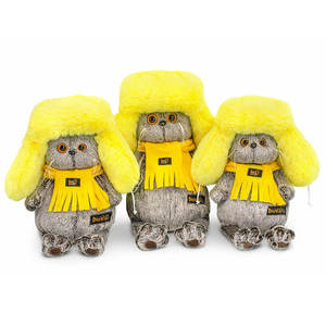 BUDI BASA Кот Басик в желтой меховой шапке 22 см