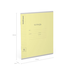 Тетрадь школьная ученическая ErichKrause Классика Visio желтая, 18 листов, линейкаТетрадь школьная ученическая формата А5+ (170х203 мм). Обложка из высококачественного мелованного картона плотностью 180 г/м2. В блоке 18 листов в линейку с полями. Бумага офсетная плотностью 60 г/м2. Цвет линовки - синий. Скругленные уголки обложки и блока. Тип скрепления - скоба.
