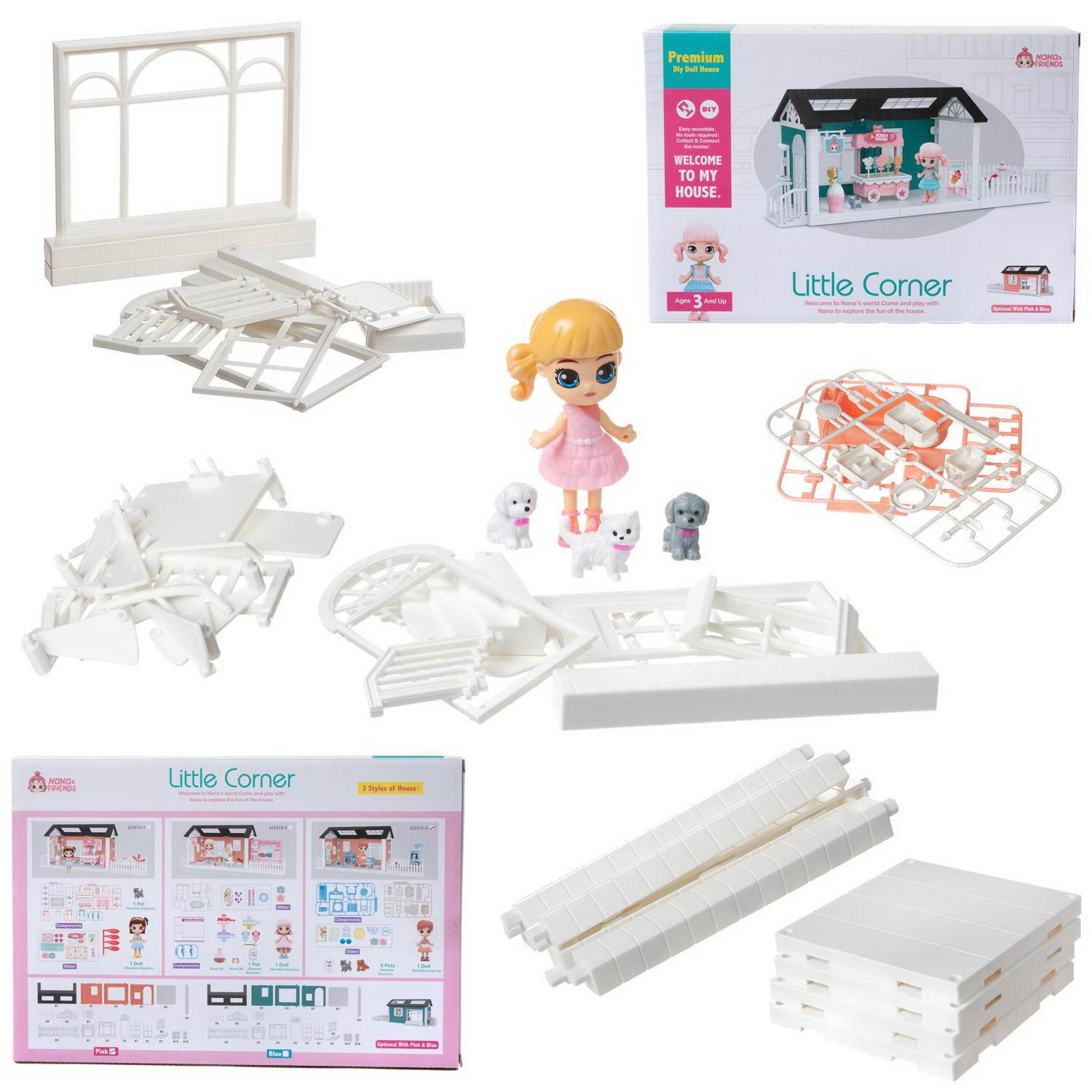 Игровой набор ABtoys Модульный домик (собери сам), 3 секции. Мини-кукла с питомцами и их домиками, в наборе с аксессуарами, голубой