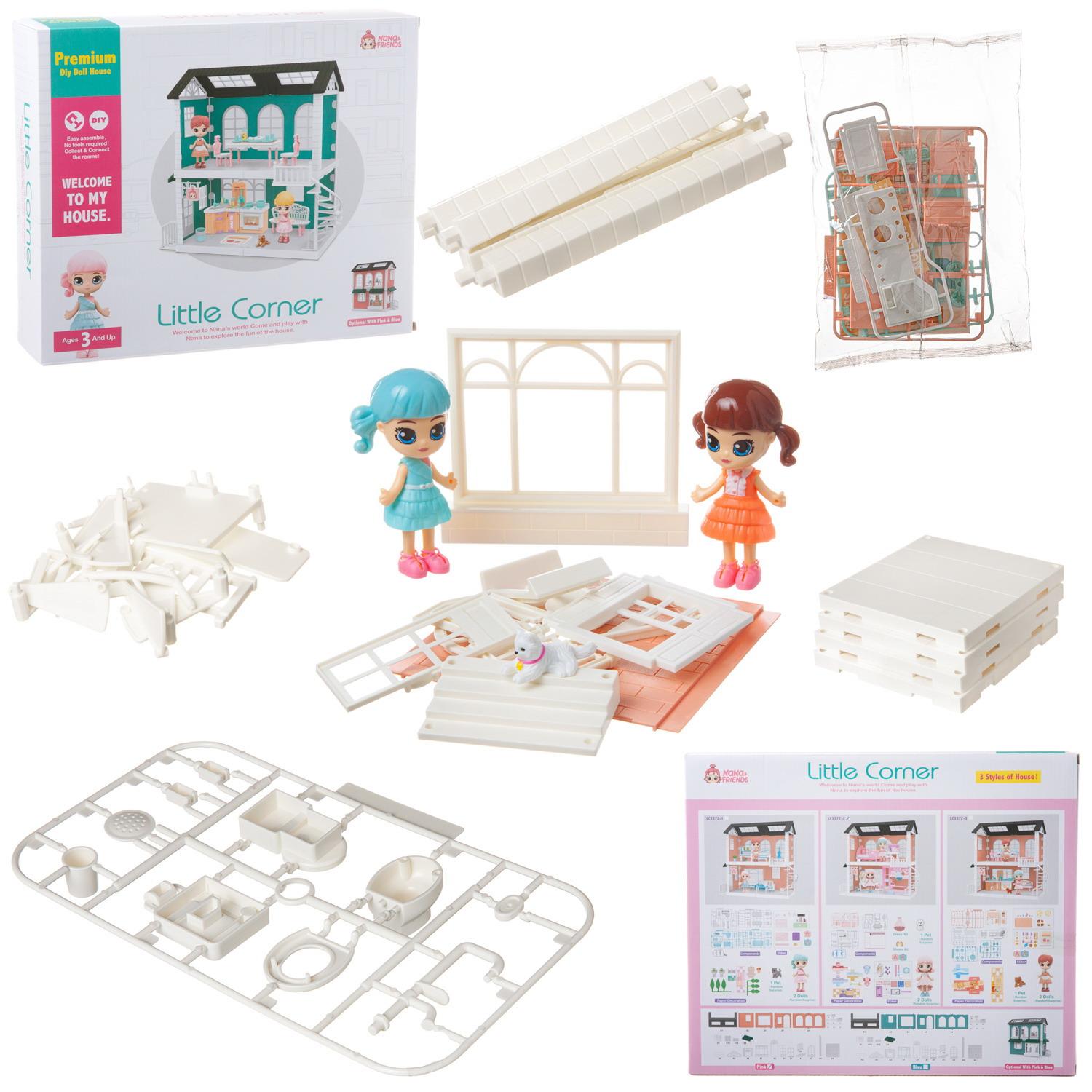 Игровой набор ABtoys Модульный домик (собери сам), 4 секции. Мини-куколки в спальне и гардеробной комнате, в наборе с аксессуарами, розовый