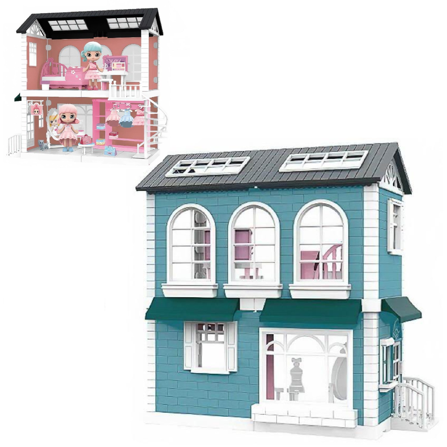 Игровой набор ABtoys Модульный домик (собери сам), 4 секции. Мини-куколки в спальне и гардеробной комнате, в наборе с аксессуарами, голубой