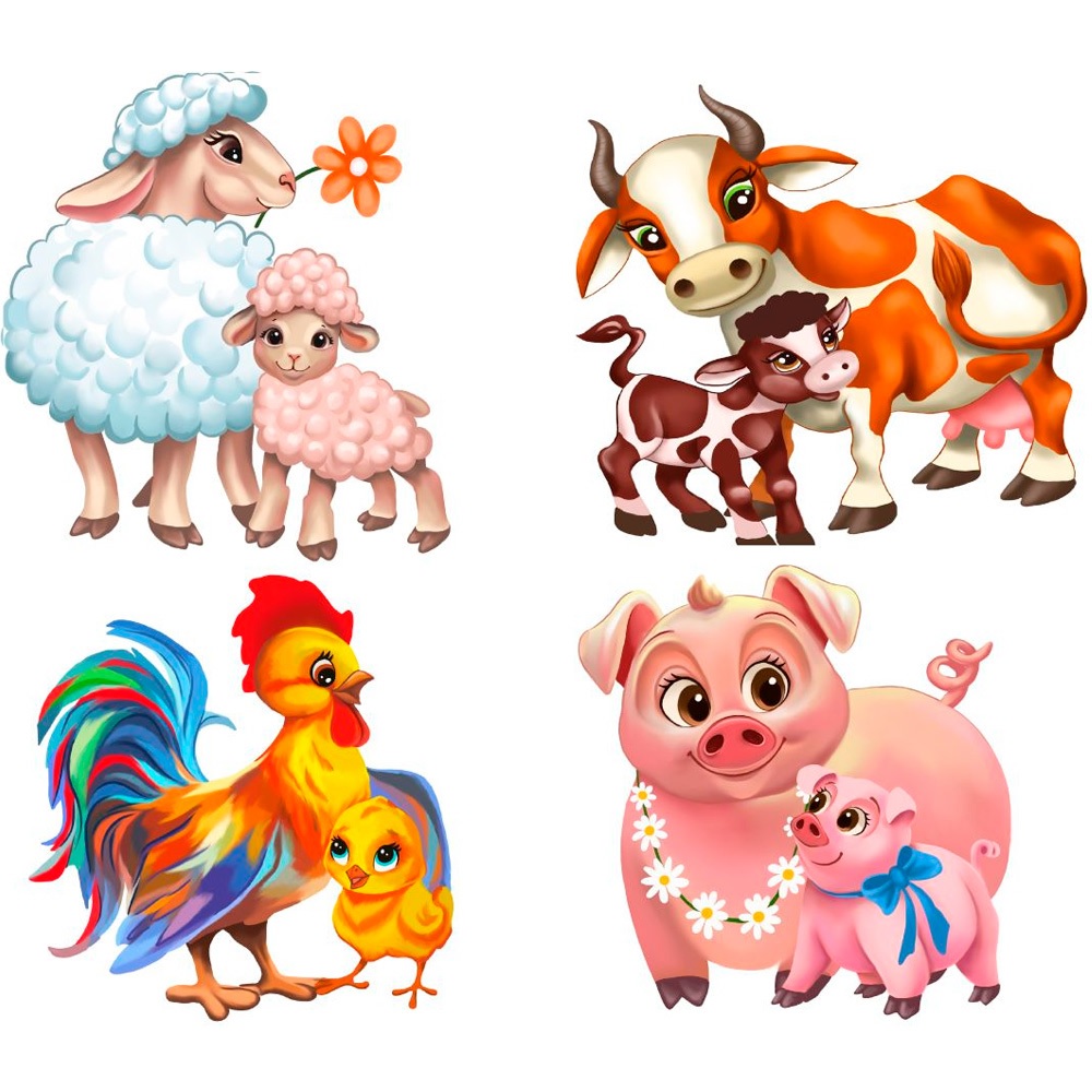 Melograno Пазл ANIMALS. Ферма 4 пазла по 4 детали, 16 деталей, размер 12 х 12, средний размер детали 6
