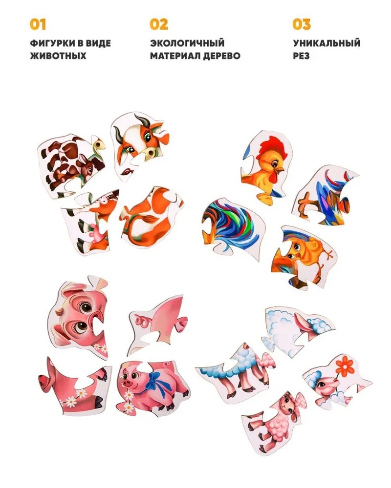 Melograno Пазл ANIMALS Ферма 4 пазла по 4 детали, 16 деталей, размер 12 х 12, средний размер детали 6