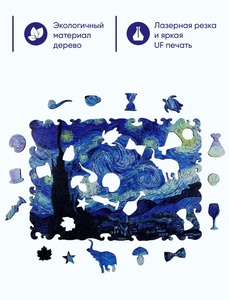 Melograno Пазл ART. Винсент Ван Гог. Звездная ночь 105 деталей, размер 23 х 16 см, средний размер детали 2,5см