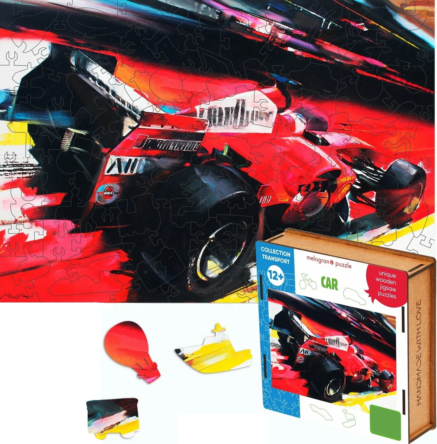 Melograno Пазл TRANSPORT. Автомобиль гоночный 120 деталей, размер 28 х 20см, средний размер детали 3,5см