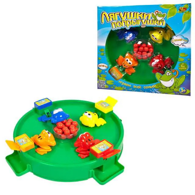 Забавная и увлекательная настольная игра для всей семьи "Лягушки-попрыгушки". Одновременно могут играть до 4-х игроковКаждый игрок выбирает для себя лягушку определенного цвета.