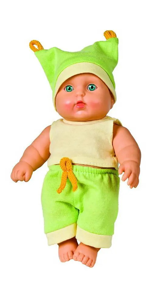 Карапуз Весна 2 (мальчик) - кукла из серии «Малыши и малышки», имеет анатомическую особенность, указывающую на её пол: мальчик. На Карапузе трикотажная безрукавая футболка, штанишки и шапочка. Производитель оставляет за собой право изменения цветовой гаммы одежды куклы, цвет глаз может варьироваться. Кукла представляет собой образ младенца-мальчика с милым личиком, пухленькими щёчками. Куклу так и хочется взять на ручки и позаботиться о ней. Игровые возможности куклы: благодаря небольшому размеру и продуманной конструкции эту куклу легко и удобно брать в руки, её можно сажать, укладывать спать, переодевать. Куклу можно купать, так как у неё вставные не закрывающиеся глазки, рельефный кукольный паричок и нет звукового устройства. Эта кукла подходит для сюжетных игр и разнообразных игровых действий ребёнка. Высота 20 см. Тело куклы пропорционально и гармонично, полностью выполнены из эластичного приятного на ощупь винила. Кукла соответствует Техническому регламенту Таможенного Союза о безопасности детской игрушки. Дополнительно к кукле можно приобрести комплект одежды.